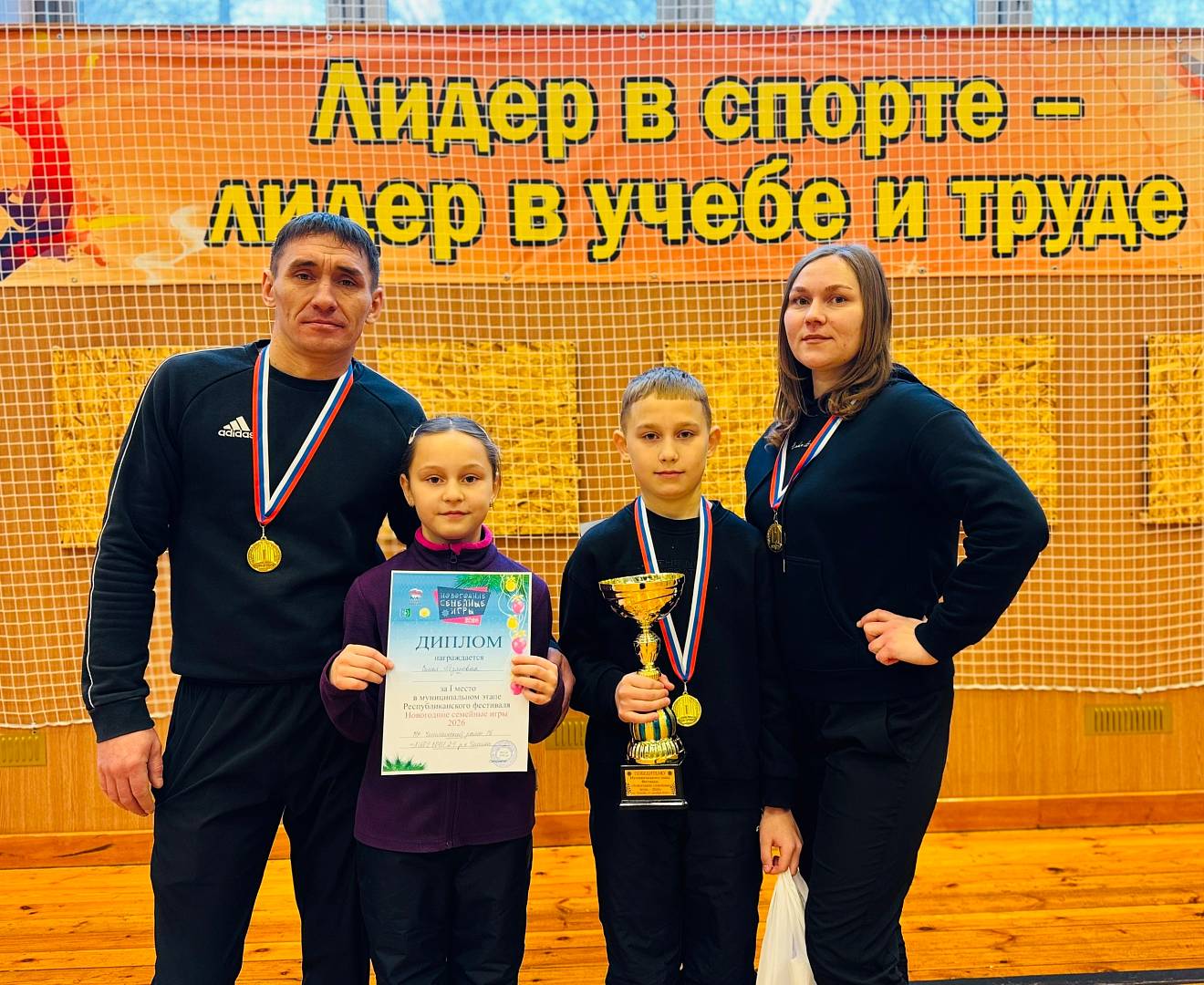 Ура! Наша гордость – семья Резяповых – сегодня снова покорила вершины! Они блестяще выступили на муниципальном этапе Новогодних семейных игр - 2026 и заняли почетное 1 место! Теперь им предстоит представлять наш район на республиканском уровне, и мы уверены, что они справятся! Поздравляем вас! Ваша энергия, сплоченность и готовность участвовать вдохновляют всех нас! Спасибо за вашу отзывчивость и неоценимую поддержку!