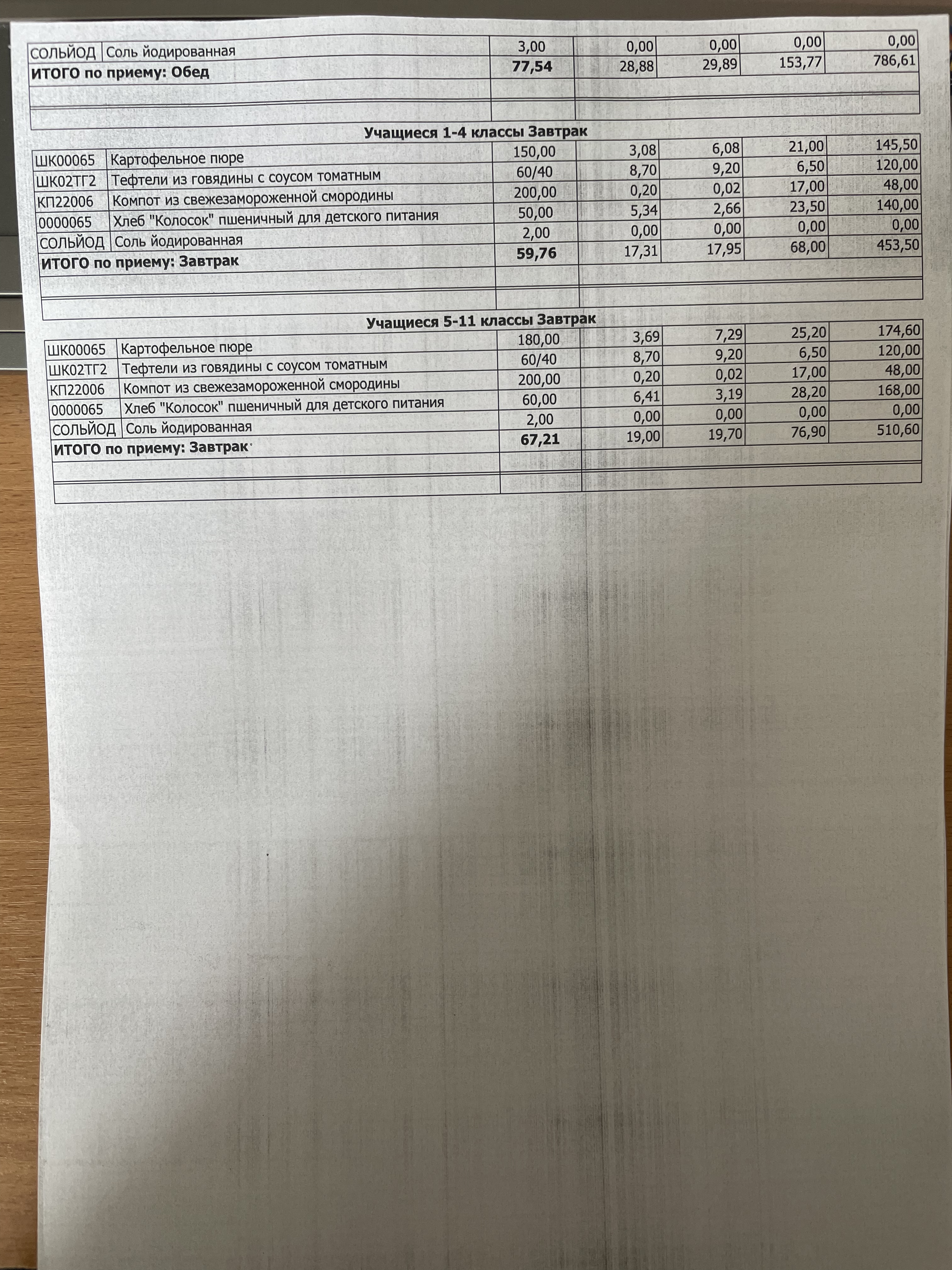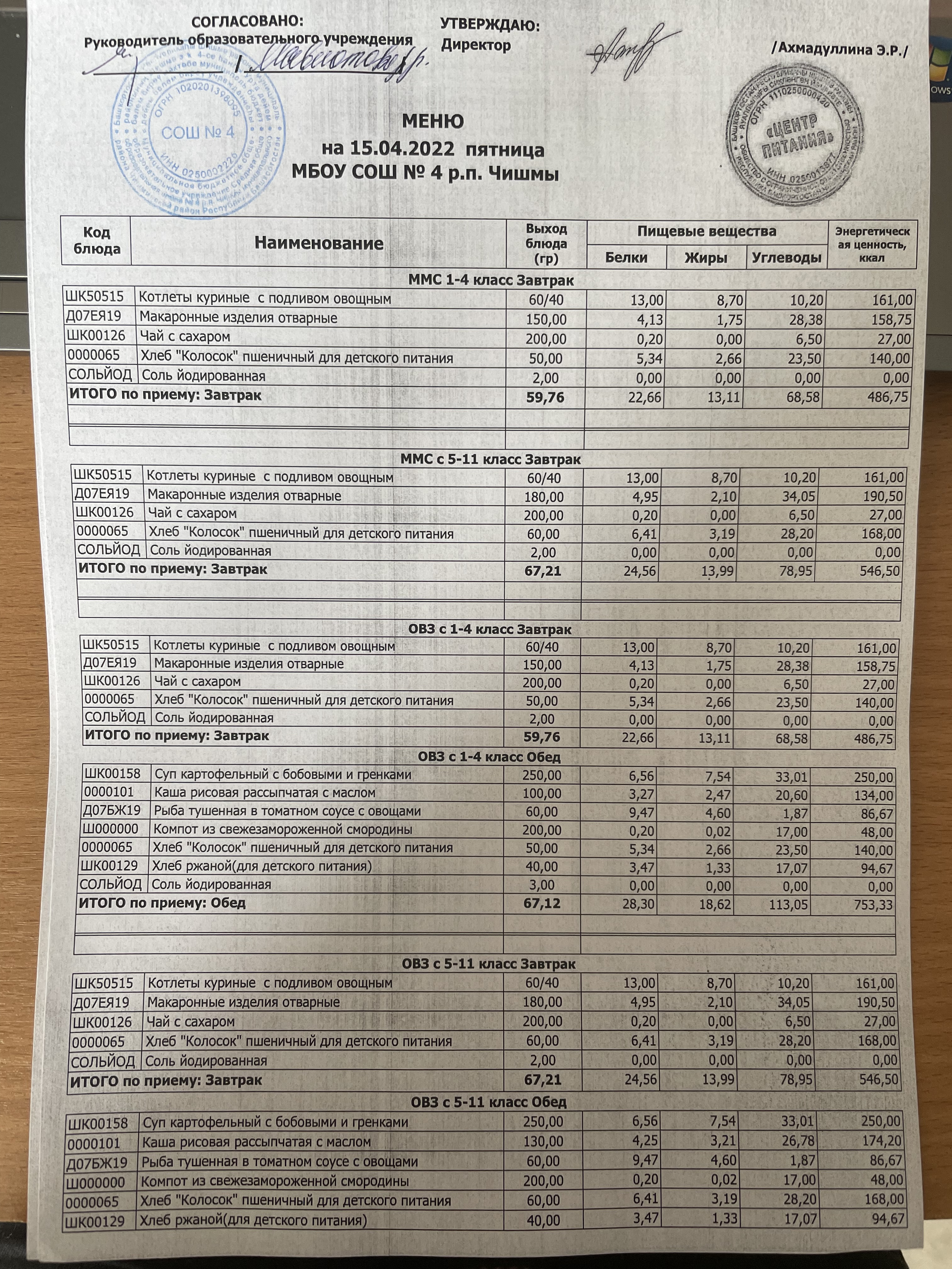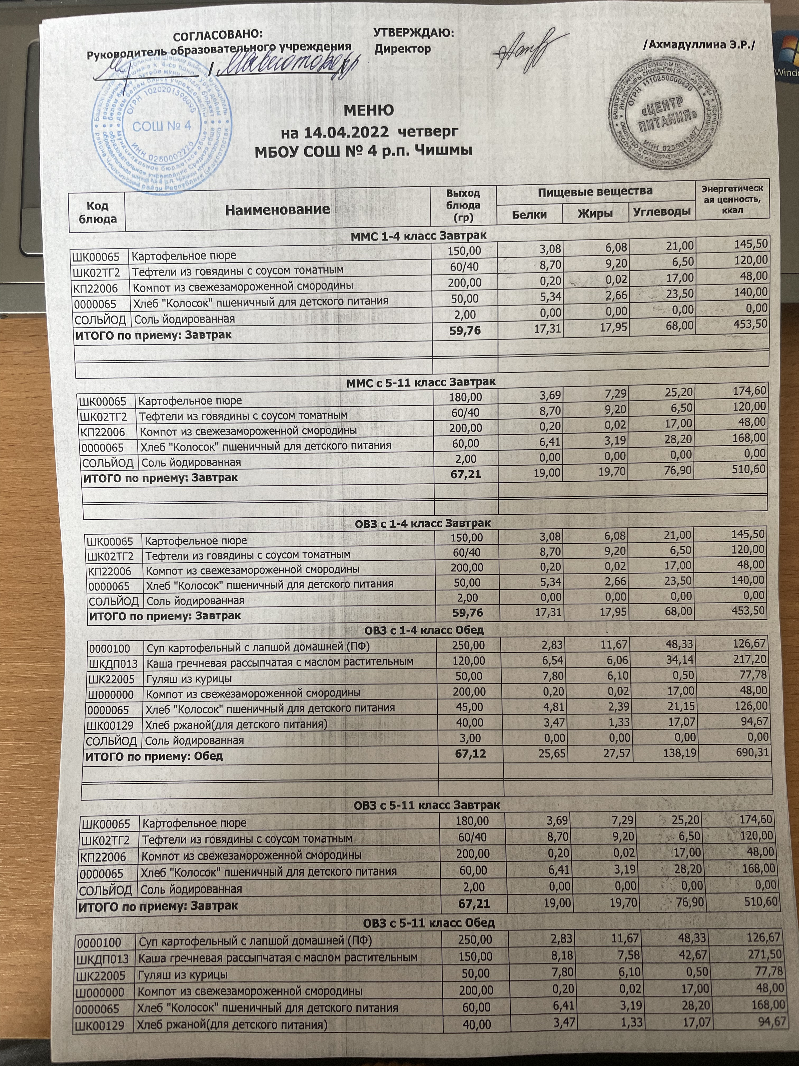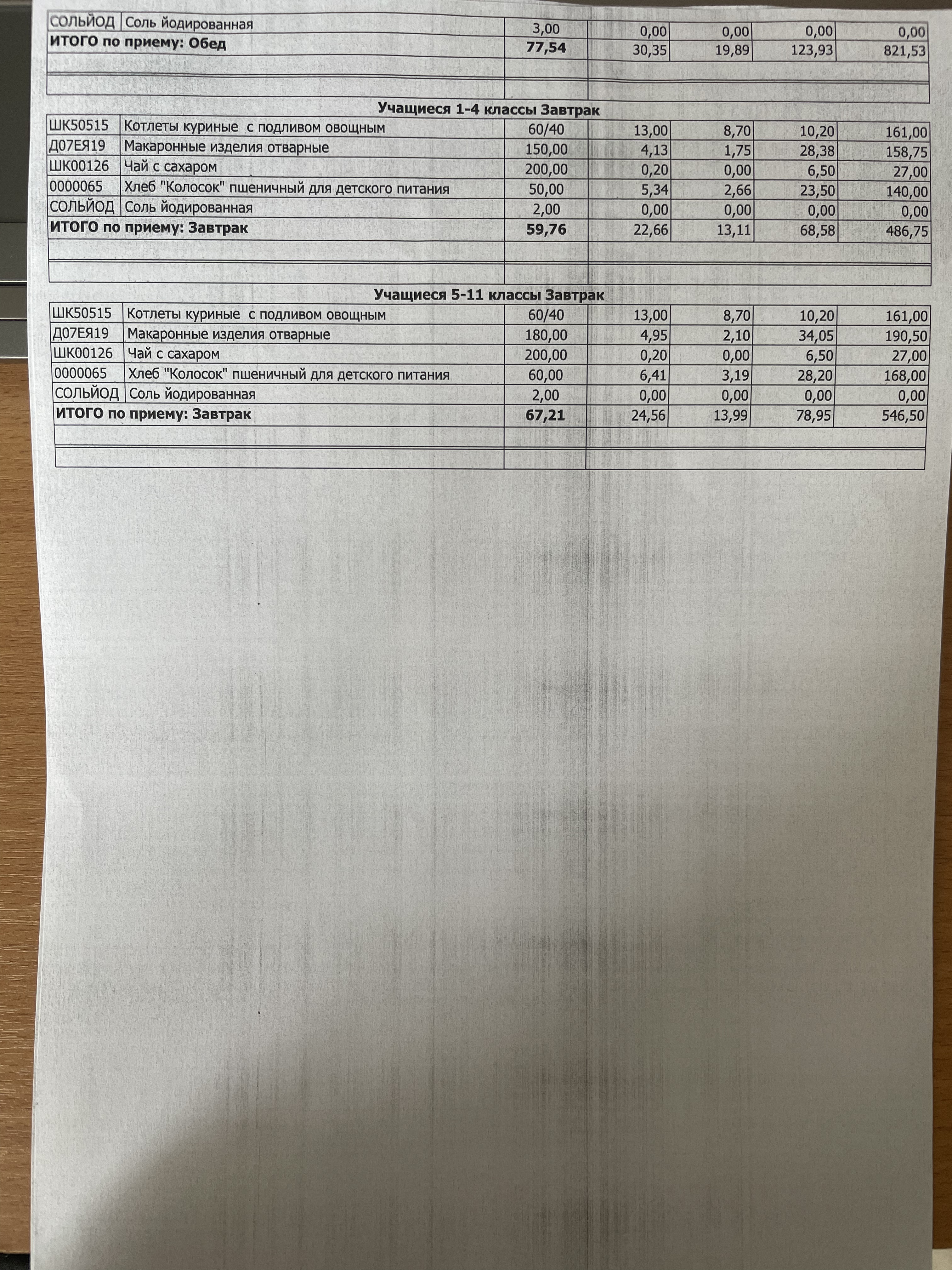(Питание 19 апреля не осуществлялось по производственной необходимости )