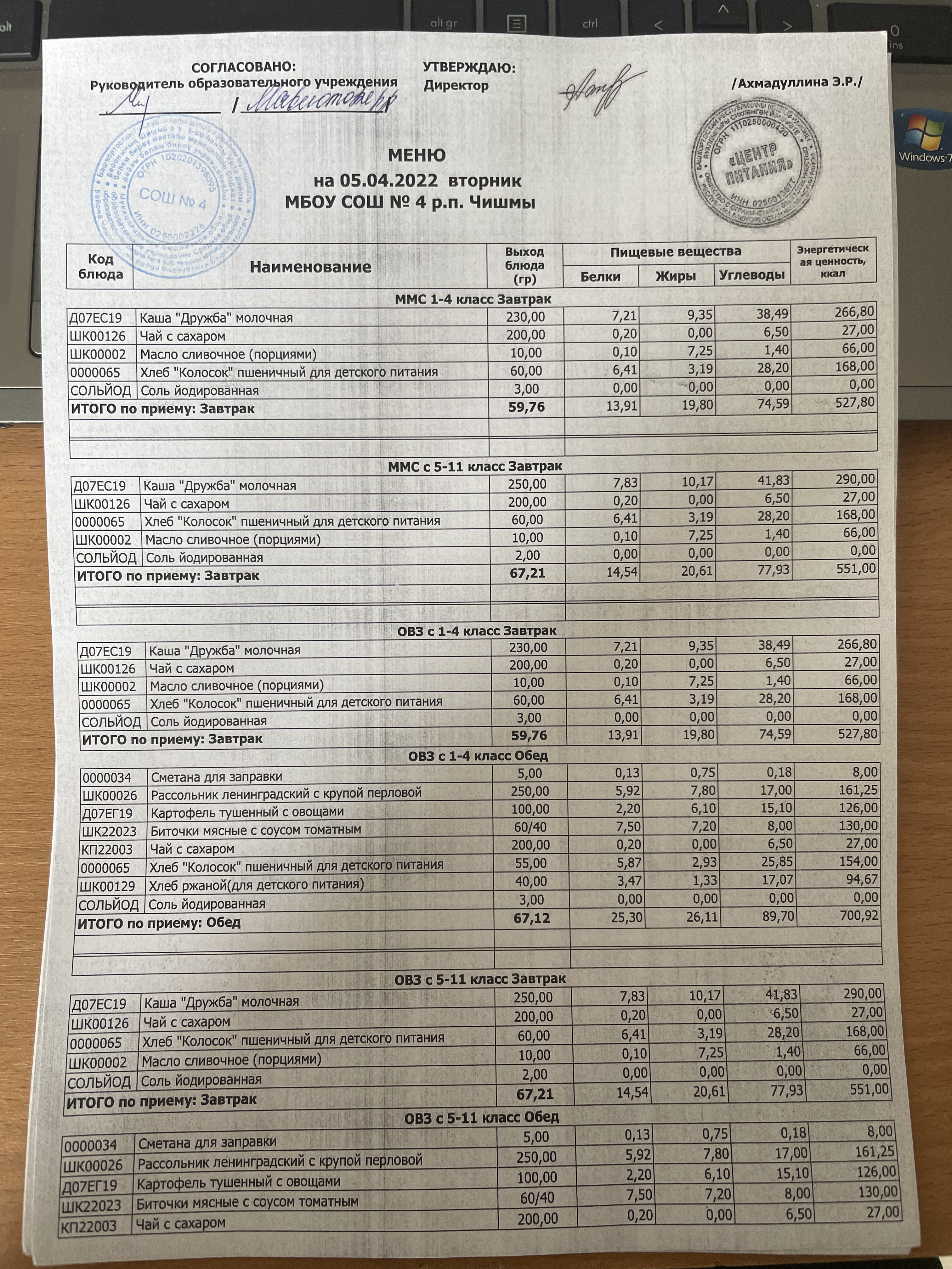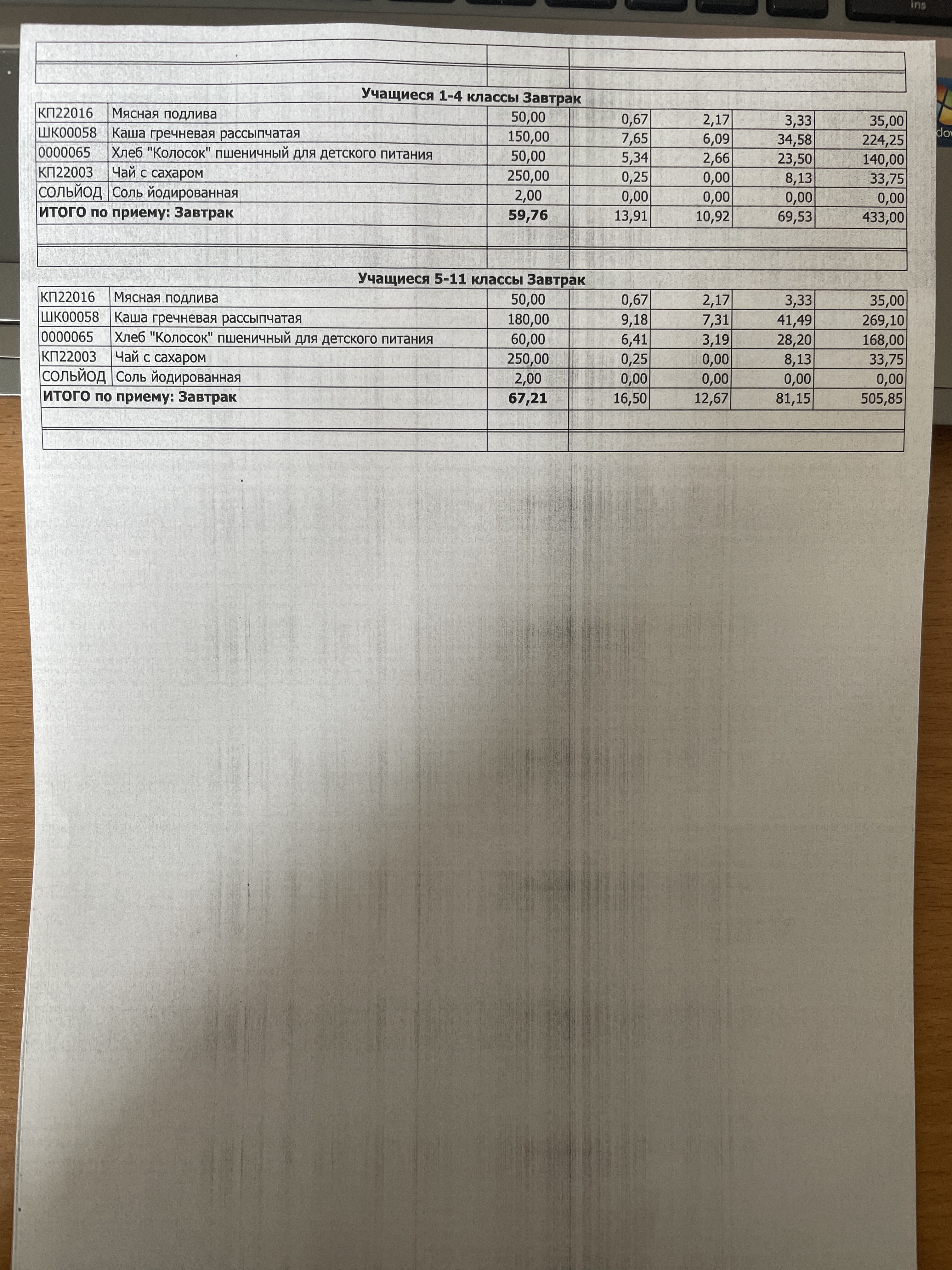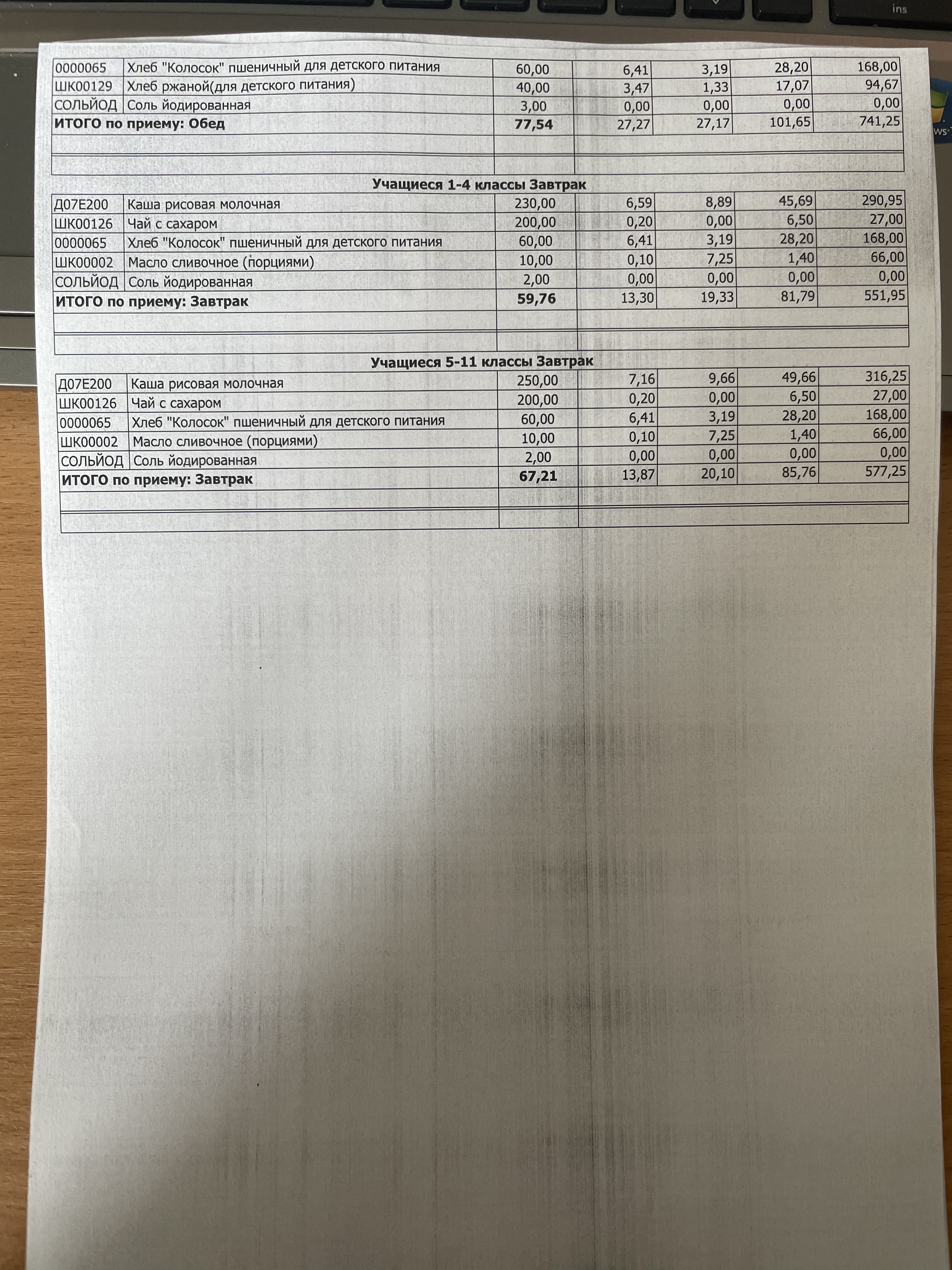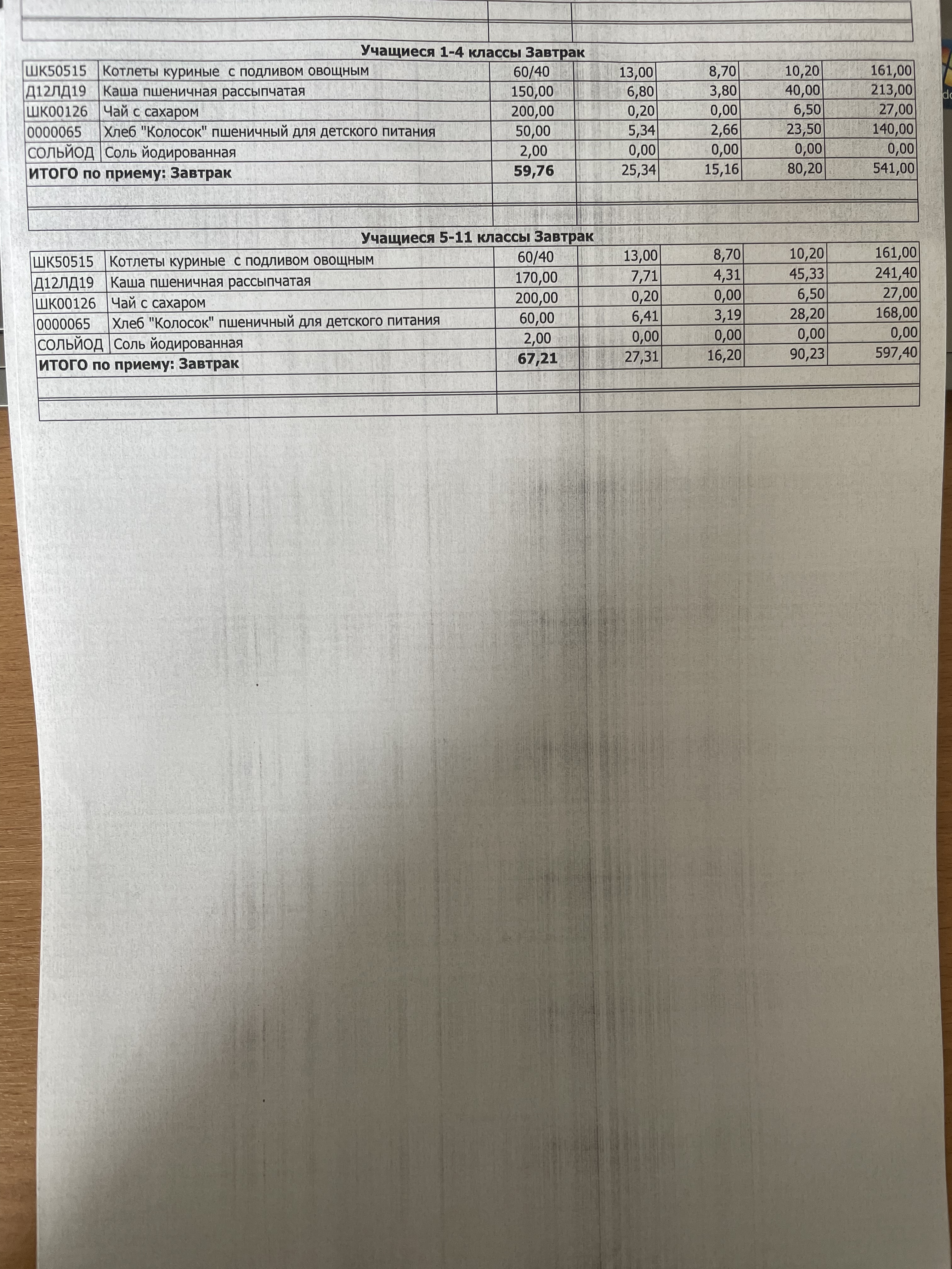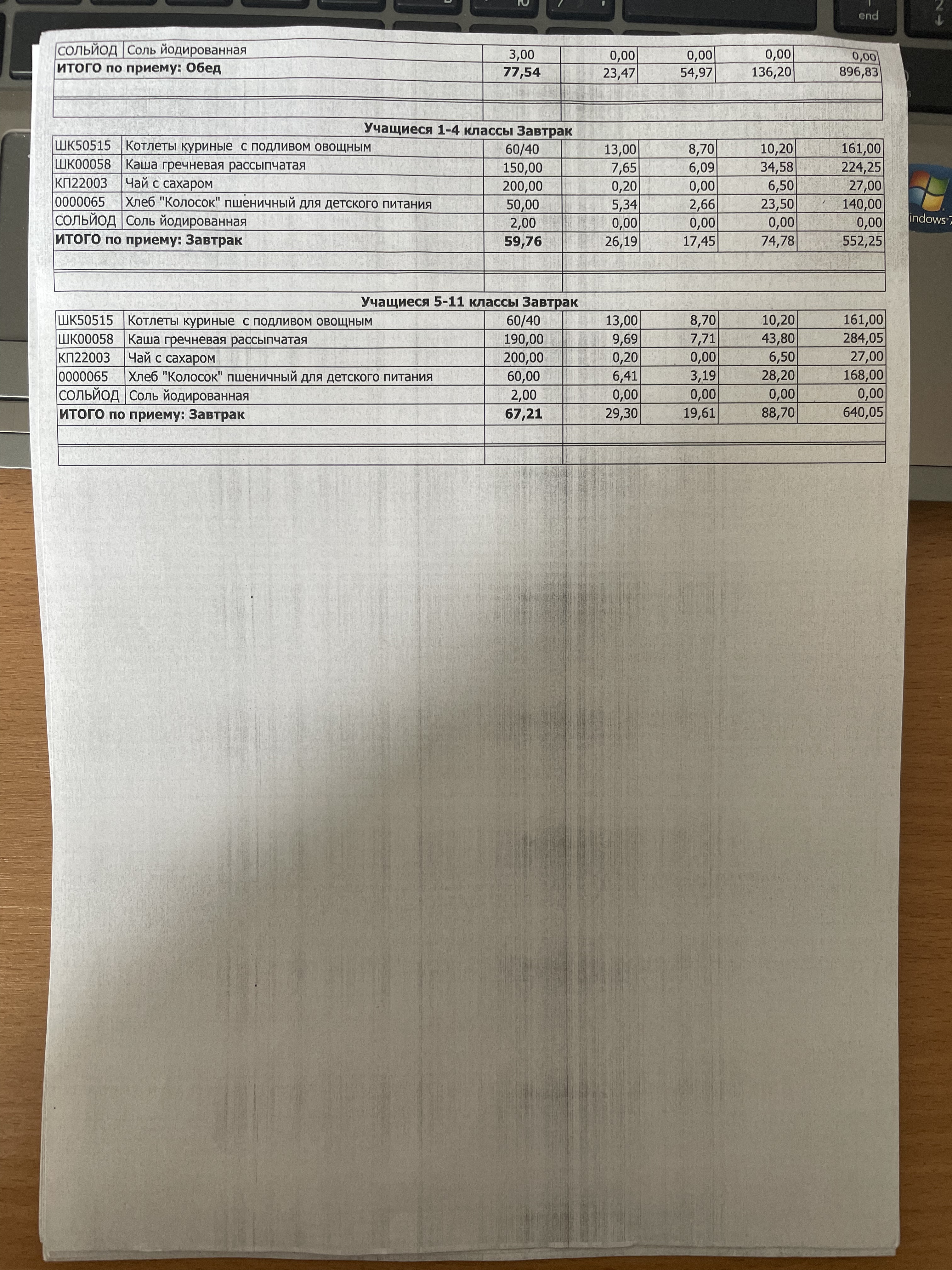 (Фото контрольных блюд )