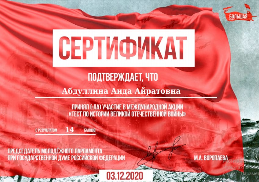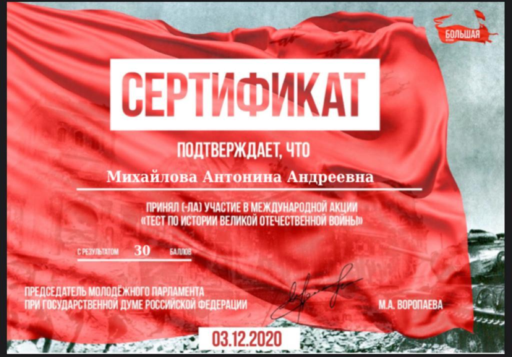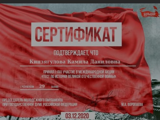Итоги участия в Международной акции "Тест по истории"